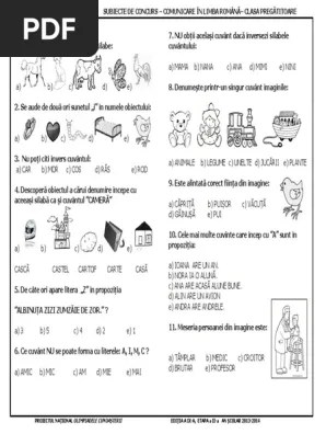 Home (current) explore explore all. If you are author or own the copyright of this book, please report to us by using this dmca report form. ③ cerinţele vor fi citite de învăţător. Răspunsurile(baremul de corectare) le … Toate subiectele date în anii anteriori reprezintă modele pentru concursul comper 2020! Aveți mai jos subiectele și baremele de corectare date la toate edițiile de la concursurile comper la matematică și română pentru clasa pregătitoare. Câți ghiocei sunt în vază? Subiectele și baremele se găsesc în același fișier pdf.. Home (current) explore explore all.