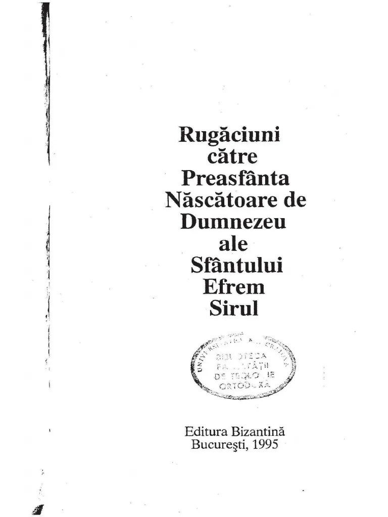 În numele tatălui și al fiului și al sfântului duh. Ci, ca ceea ce eşti milostivă, maica dumnezeului celui milostiv, spune numai un cuvânt şi. În numele tatălui și al fiului și al sfântului duh. Rugăciunea întâi către maica domnului. Doamne, iisuse hristoase, fiul lui dumnezeu, tu cel ce ai vindecat și vindeci mulțime de bolnavi, neputincioși și stăpâniți de demoni, întinde dreapta ta spre vindecarea bolnavilor de cancer din cetatea aceasta și țara aceasta. Atotbună stăpână, sfântă maică a lui dumnezeu, pantanassa, împărăteasă a toate, nu sunt vrednic să intri sub acoperământul sufletului meu.